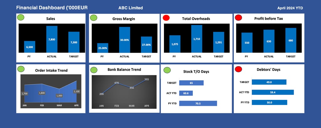 I work with clients to create what I call "Finance on a Page." 5 - 8 key numbers that tell you: